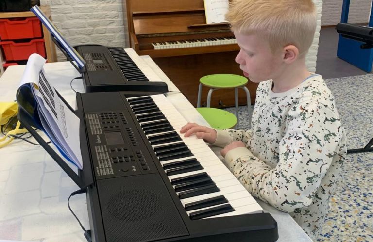 Wij vinden het belangrijk dat kinderen ontdekken hoe leuk het is om een muziekinstrument te leren bespelen. Daarom krijgt elk kind in de bovenbouw de kans om een instrument uit te proberen:
