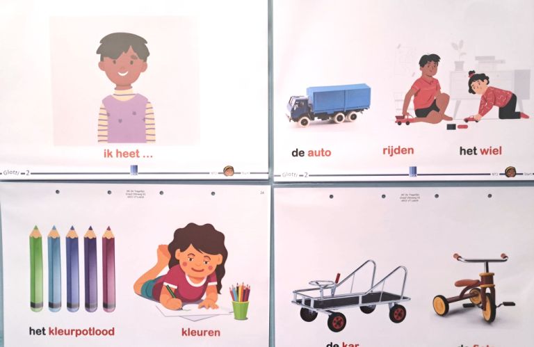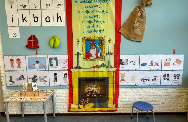 In deze klas werkt een gespecialiseerde leerkracht met materiaal wat ontwikkeld is voor kinderen die nog Nederlands moeten leren. We investeren veel in woordenschat, spreken, lezen en schrijven.